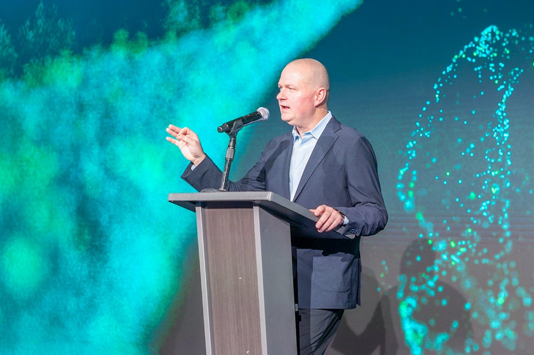 - General sessions – stage-wide shots showing presentation slides, branding, and full-room energy; mid-range images that highlight speakers at the lectern; and tight, expressive portraits capturing executive presence on stage.